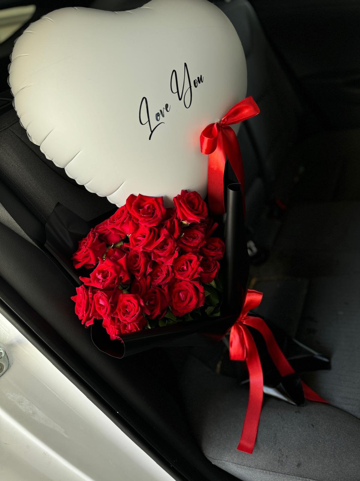 זר 30 ורדים אדומים +בלון לב עם הקדשה +עטיפה יוקרתית