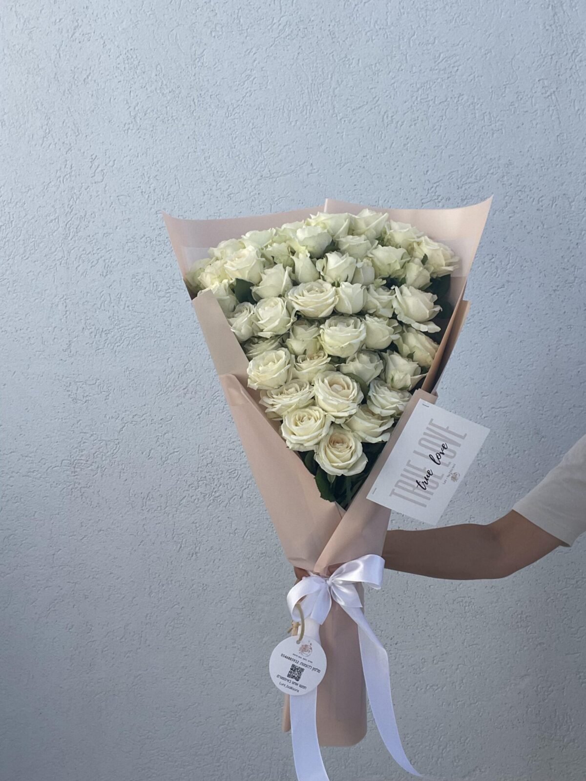 זר 40 ורדים לבנים בעטיפה יוקרתית
