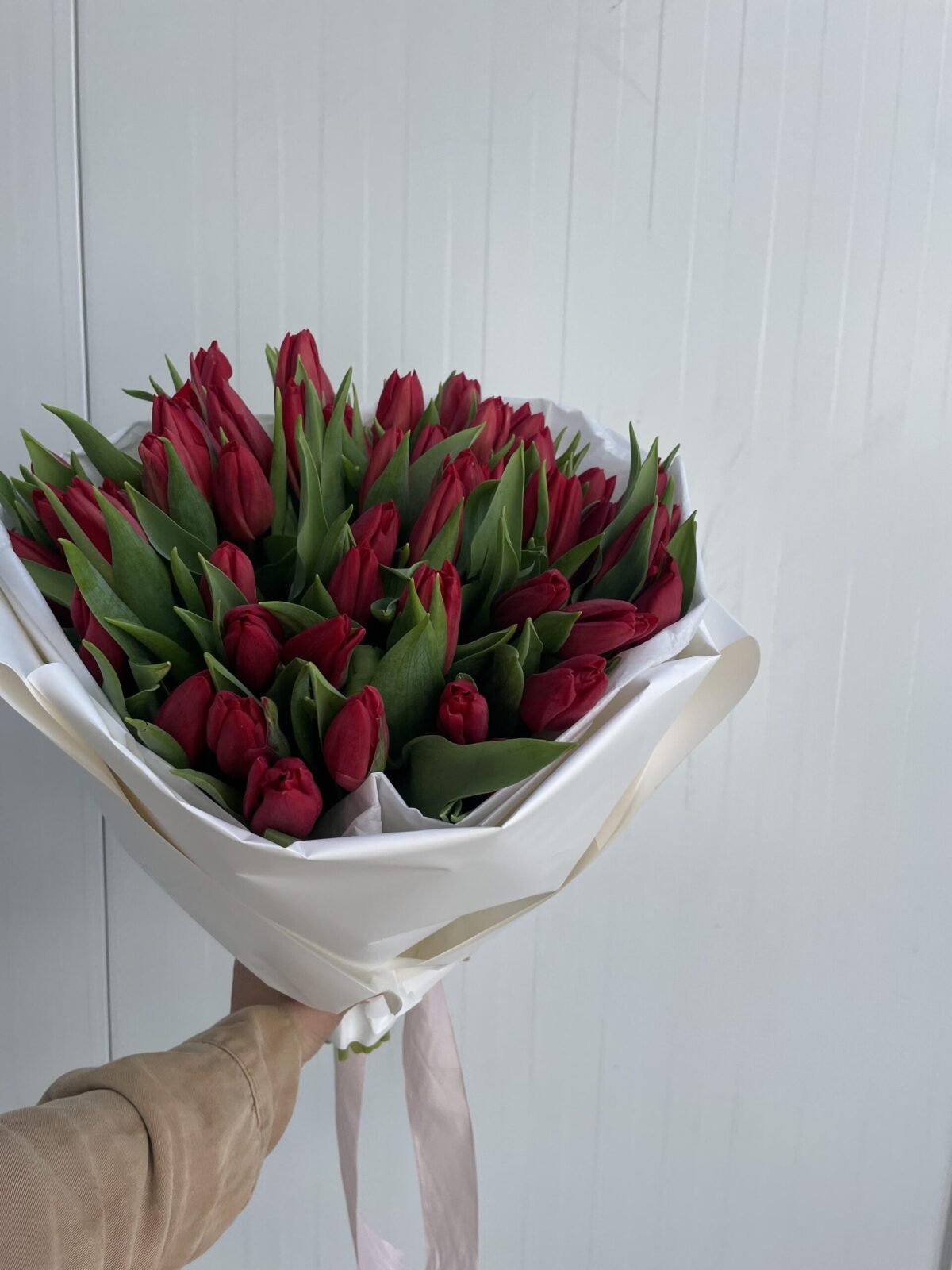 זר 50 טוליפים בעונה בעטיפה יוקרתית