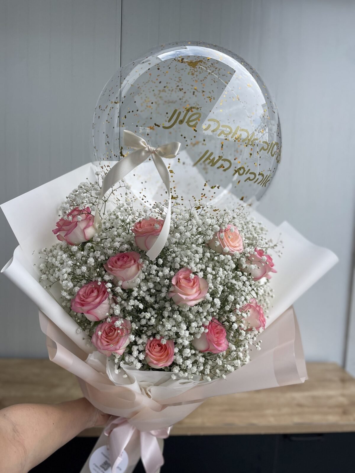 זר ורדים עם גבסניות