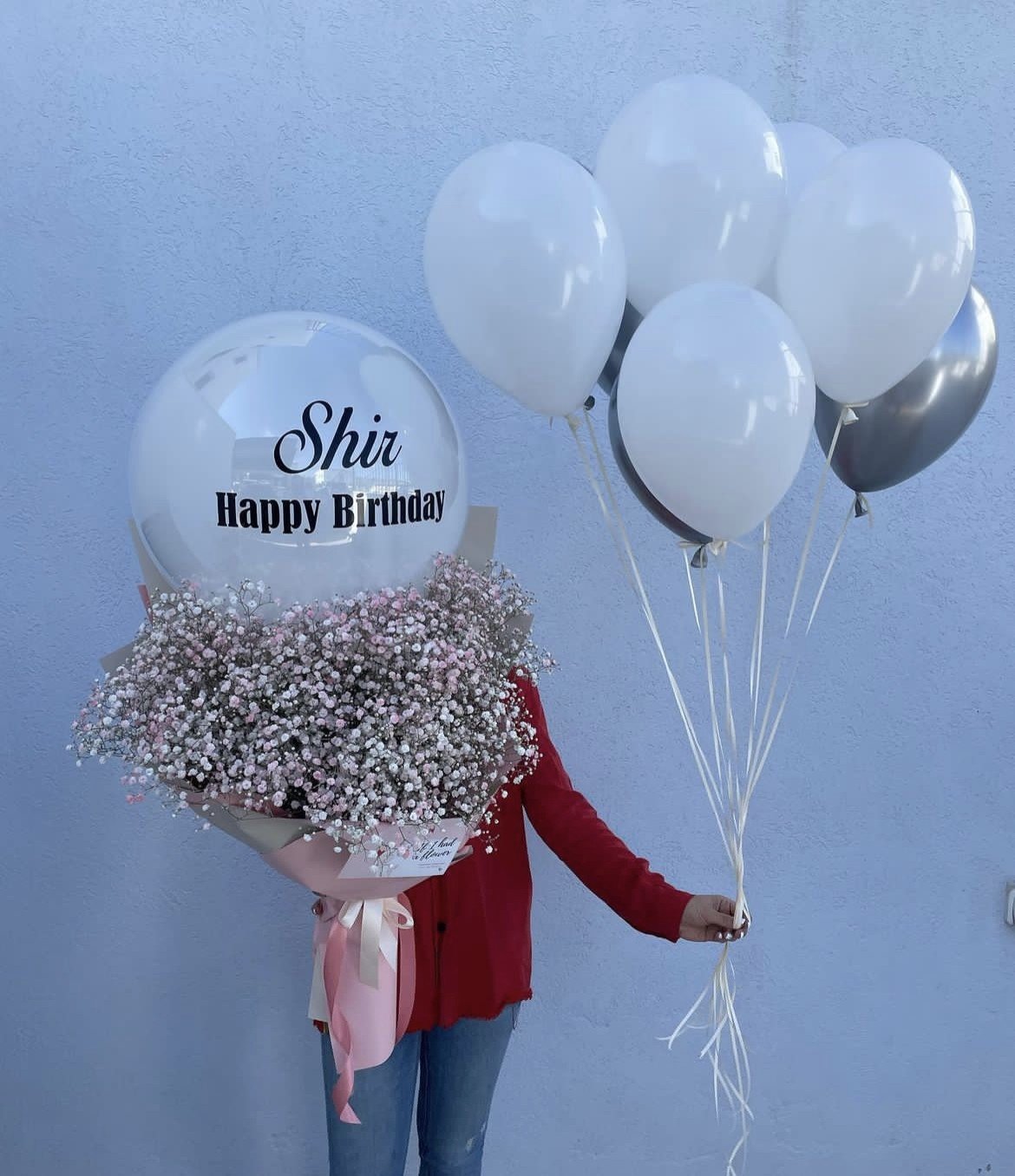 זר גבסניות – בלון באבל עם הקדשה – עטיפה יוקרתית