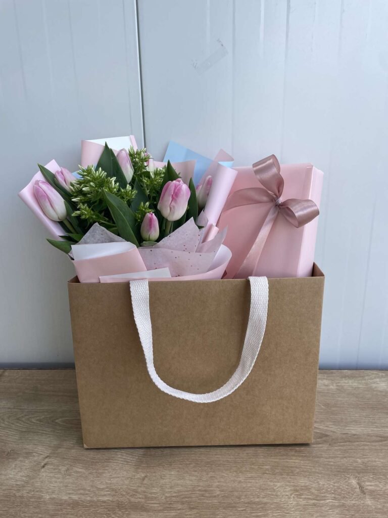 תיק הכולל זר 10 טוליפים+שוקולד